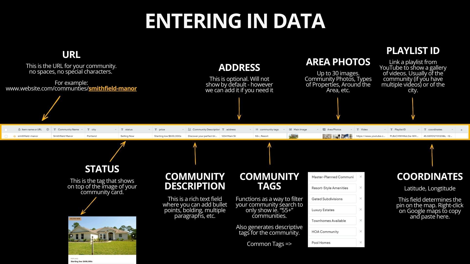 Once entered, the system automatically displays that community across your website wherever it’s needed.