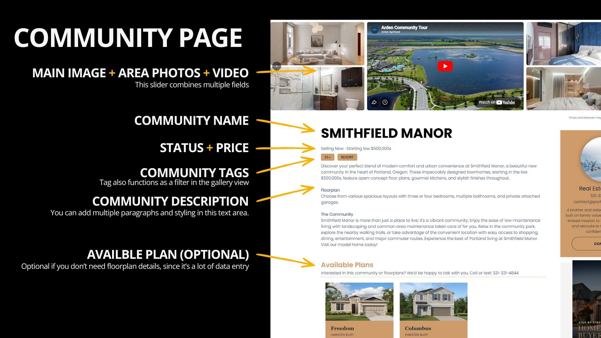 Most real estate websites struggle to organize new construction communities in a way that’s both easy for visitors to explore and easy for agents to manage. This system solves that.